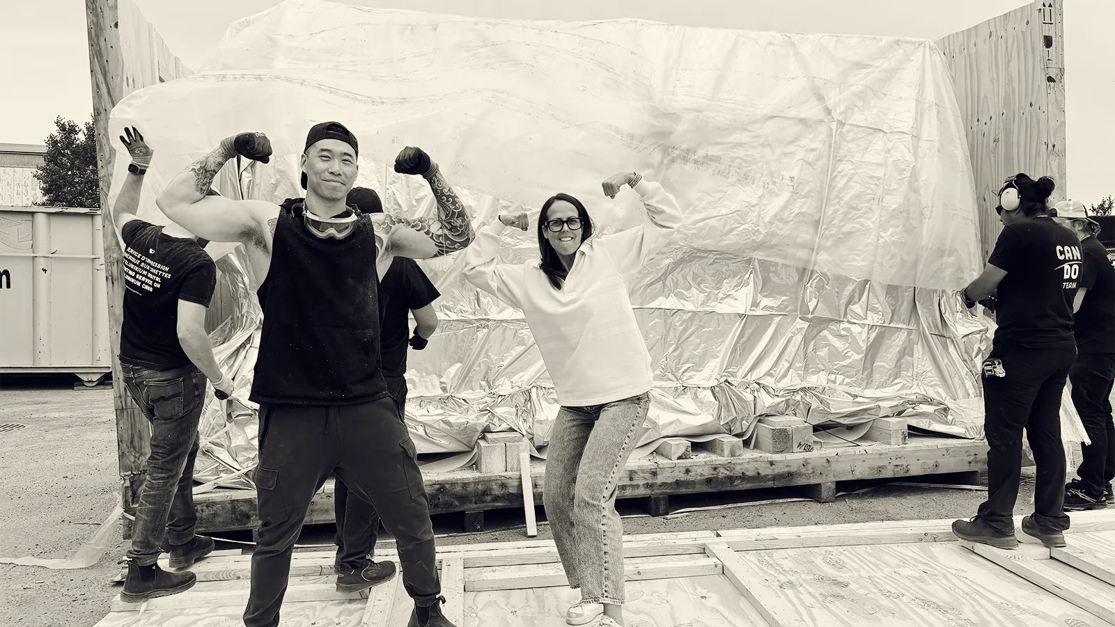 Celine’s reveal with Muscles Lee, Steph Hart, and the Can-Do team.