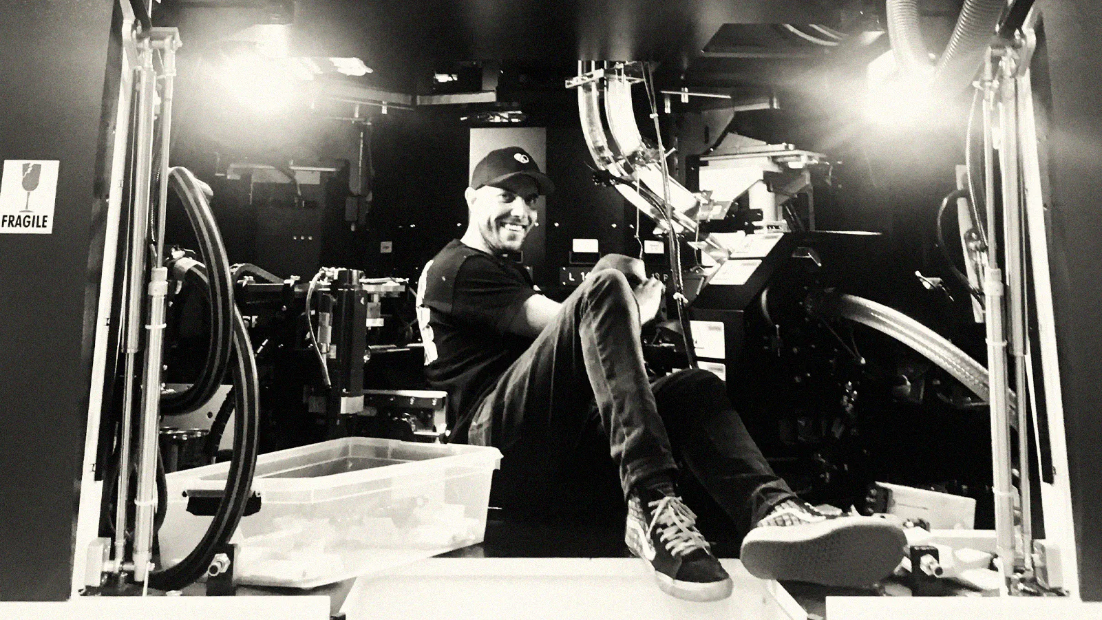 Our cofounder JP at Jolene, the first printer to print digitally on cans.
